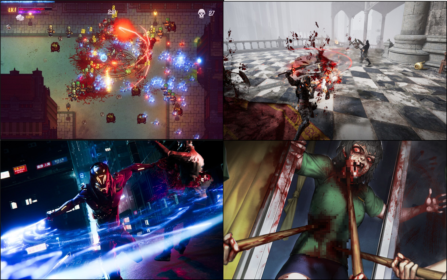 | - 存在攻击行为和血腥,但表现较轻微- - 非真实级别的血腥效果或像素风格