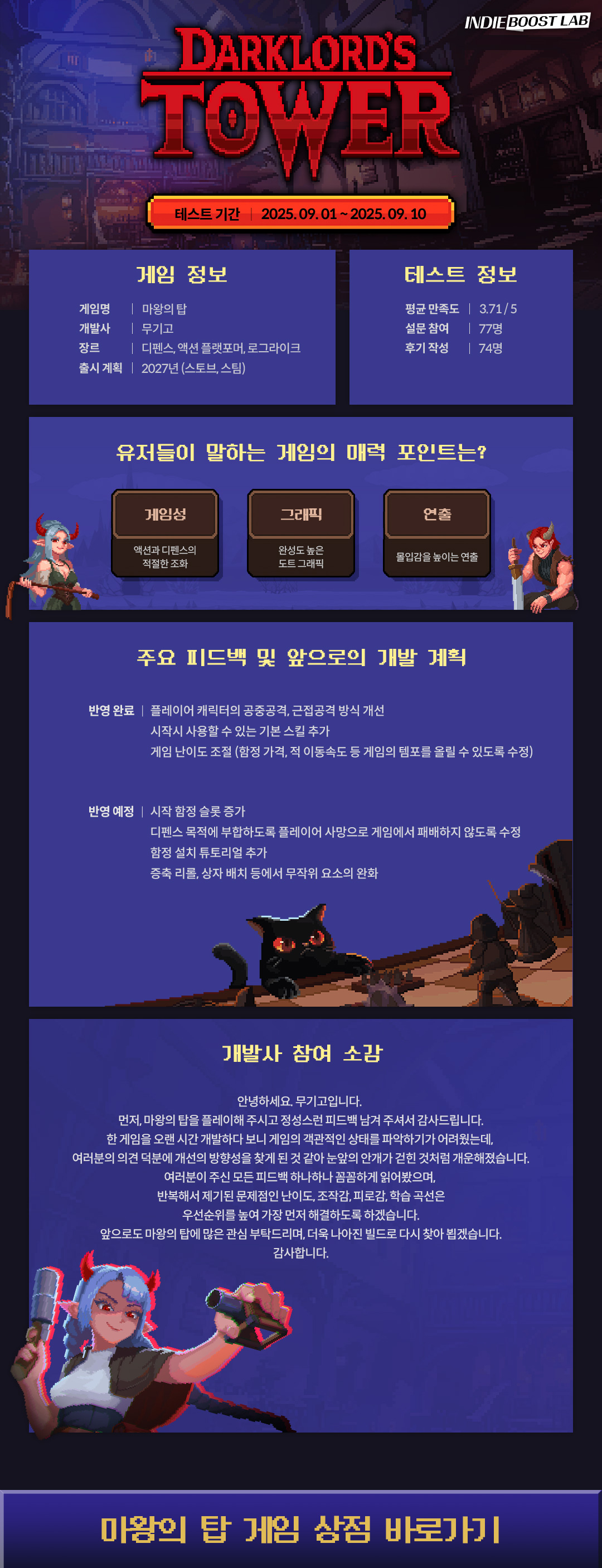 INDIE BOOST LAB에 참여한 '마왕의 탑'의 후기를 지금 확인해보세요!
