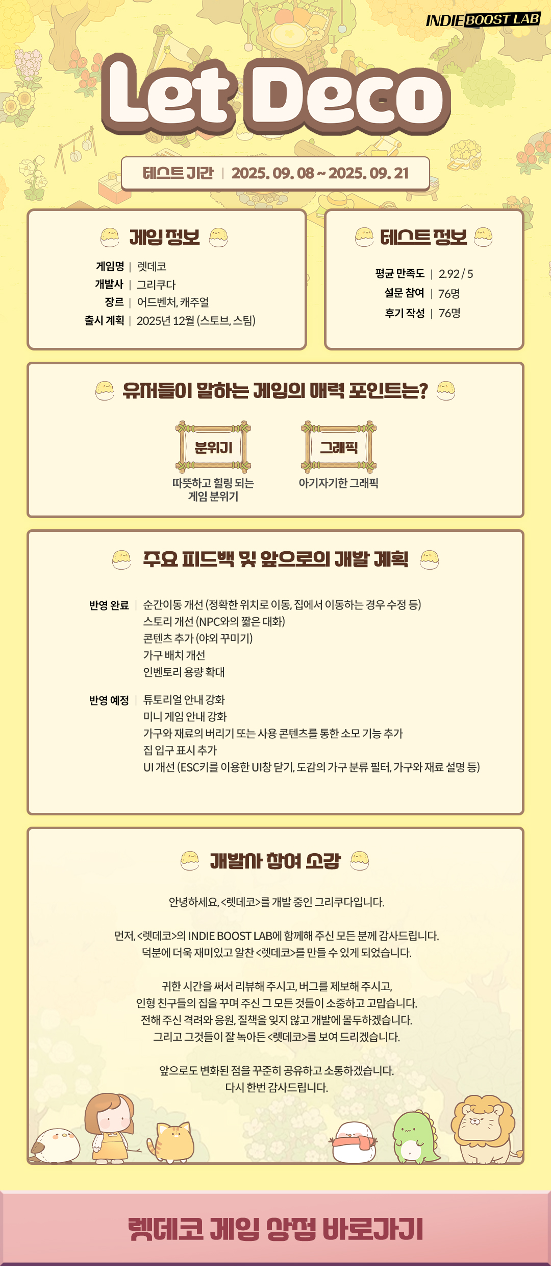 INDIE BOOST LAB에 참여한 '렛데코'의 후기를 지금 확인해보세요!